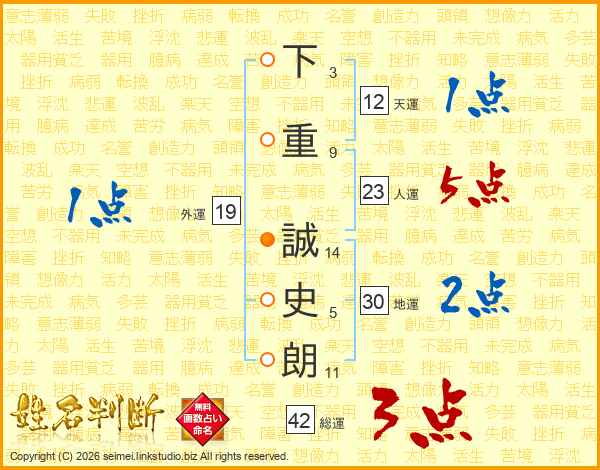 下重誠史朗さんの人運は23画の5点!