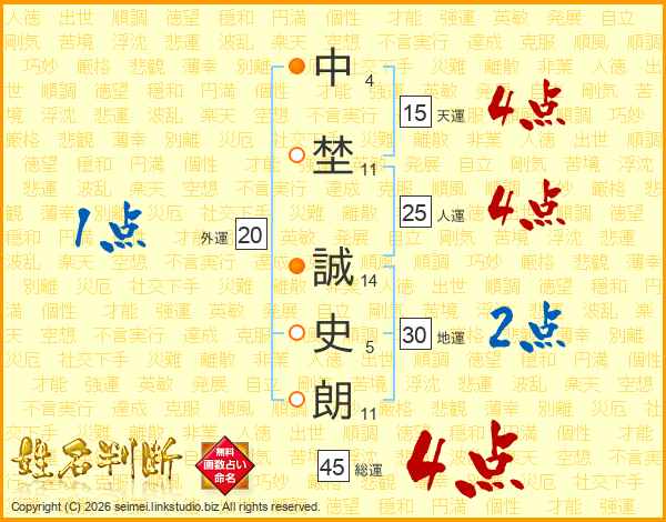 中埜誠史朗さんの総運は45画の4点!