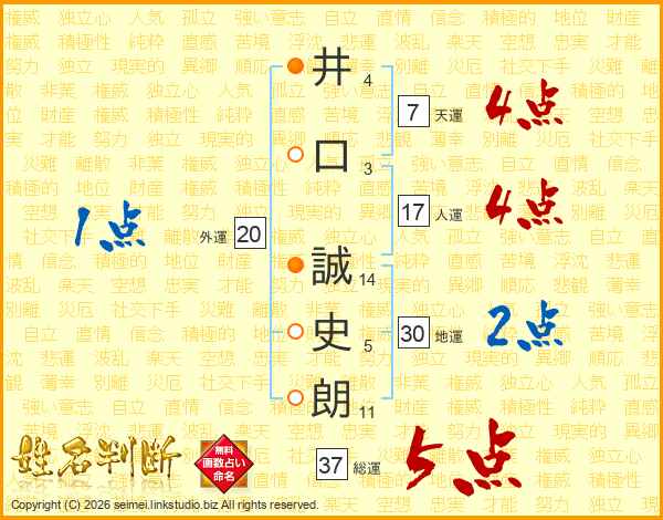 井口誠史朗さんの総運は37画の5点!