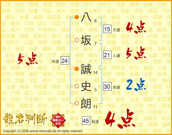 八坂誠史朗さんの総運は45画の4点!