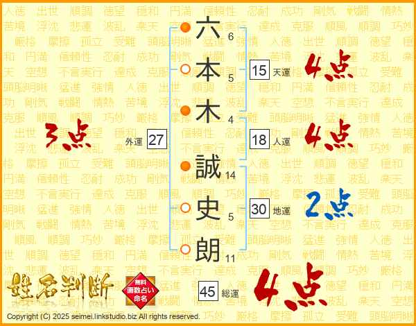 六(6画)本(5画)木(4画) 誠(14画)史(5画)朗(11画)