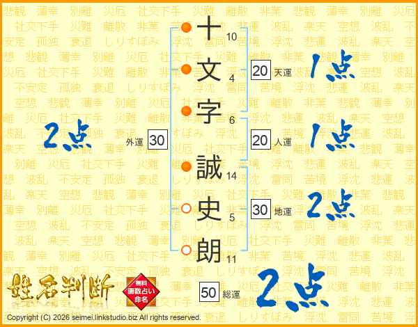 十(10画)文(4画)字(6画) 誠(14画)史(5画)朗(11画)