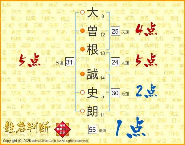 大曽根誠史朗さんの天運は25画の4点!