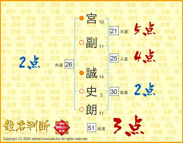 宮副誠史朗さんの天運は21画の5点!