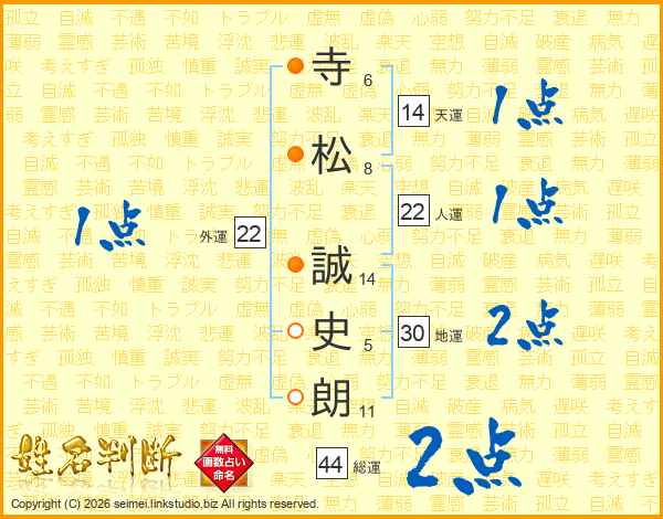 寺松誠史朗さんの総運は44画の2点!