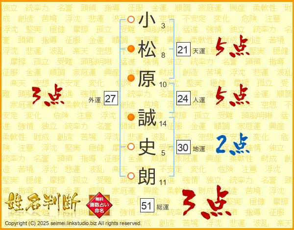 小(3画)松(8画)原(10画) 誠(14画)史(5画)朗(11画)