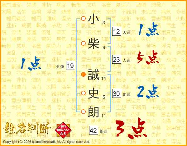 小柴誠史朗さんの人運は23画の5点!