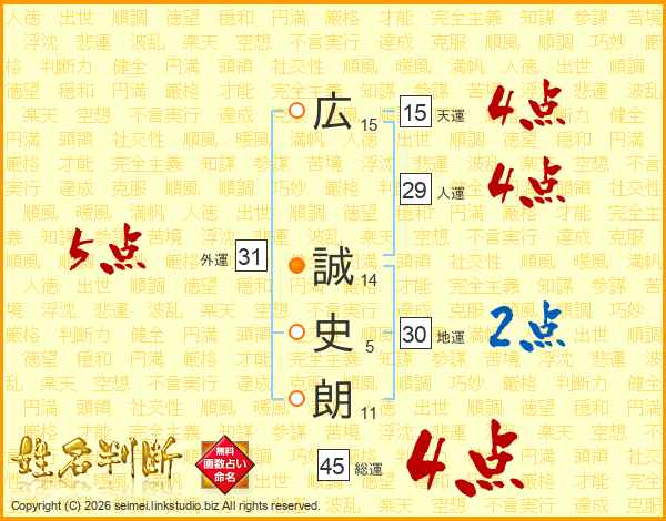 広誠史朗さんの総運は45画の4点!