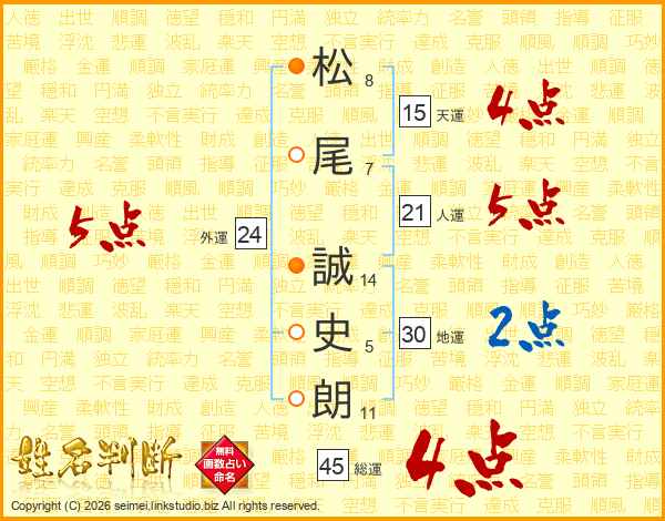 松尾誠史朗さんの総運は45画の4点!