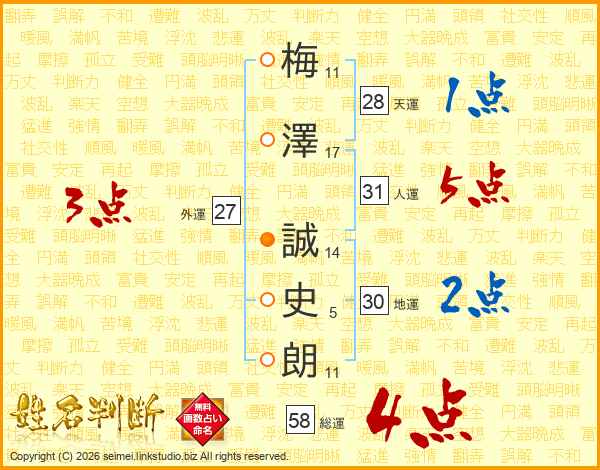 梅澤誠史朗さんの人運は31画の5点!
