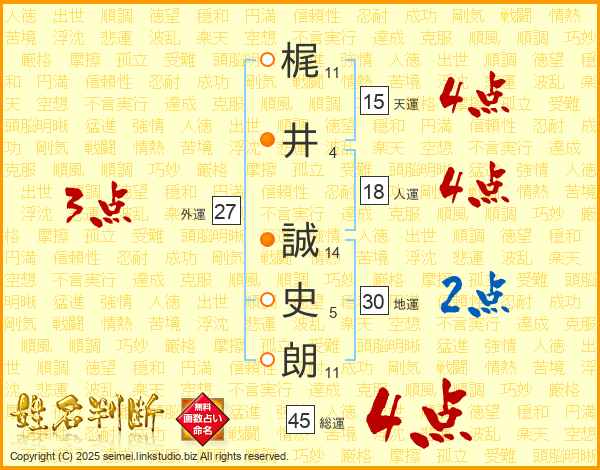 梶井誠史朗さんの天運は15画の4点!