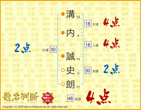 溝内誠史朗さんの総運は48画の4点!