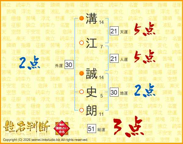 溝江誠史朗さんの人運は21画の5点!