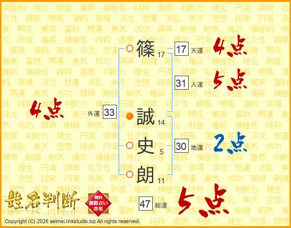 篠誠史朗さんの総運は47画の5点!