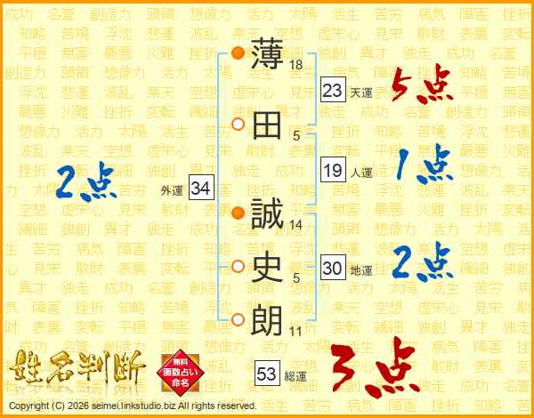 薄田誠史朗さんの天運は23画の5点!