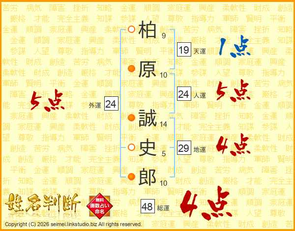 柏(9画)原(10画) 誠(14画)史(5画)郎(10画)