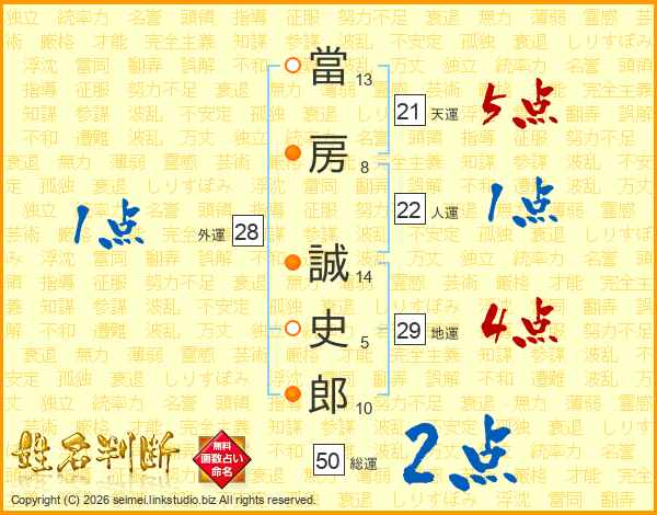 當房誠史郎さんの天運は21画の5点!