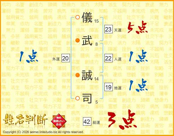 画数の奇数(○陽)と偶数(●陰)の配列で吉凶を占います。どちらかにかたよる名前は大凶名で避ける必要があります。画数の奇数偶数。