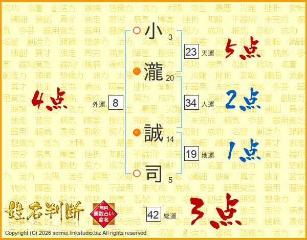小(3画)瀧(20画) 誠(14画)司(5画)