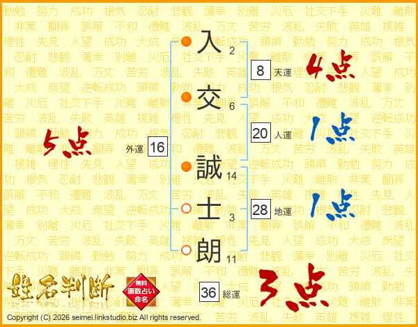 入交誠士朗さんの外運は16画の5点!