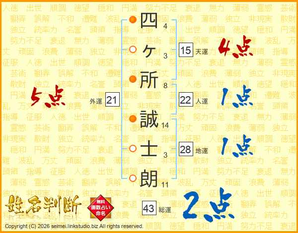 四ヶ所誠士朗さんの総運は43画の2点!