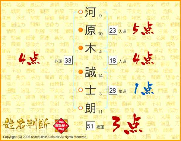 河原木誠士朗さんの外運は33画の4点!