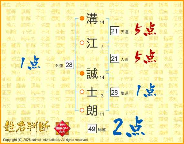 溝江誠士朗さんの人運は21画の5点!