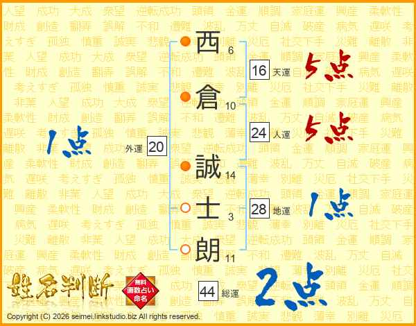 西倉誠士朗さんの総運は44画の2点!