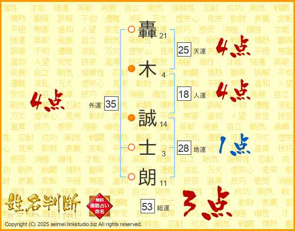 轟木誠士朗さんの天運は25画の4点!