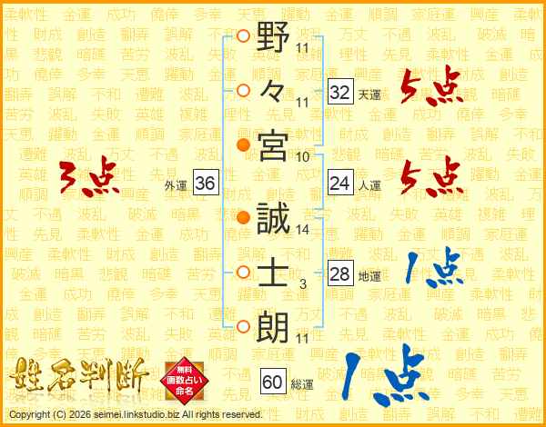 野々宮誠士朗さんの人運は24画の5点!