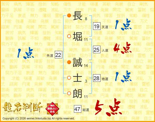 長堀誠士朗さんの人運は25画の4点!