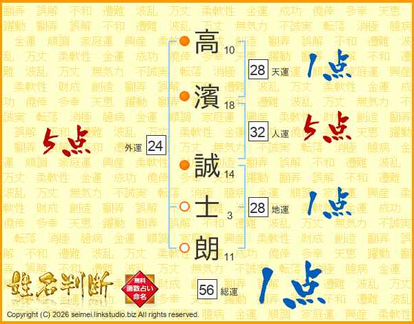 高濱誠士朗さんの総運は56画の1点!