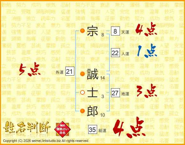 宗(8画) 誠(14画)士(3画)郎(10画)