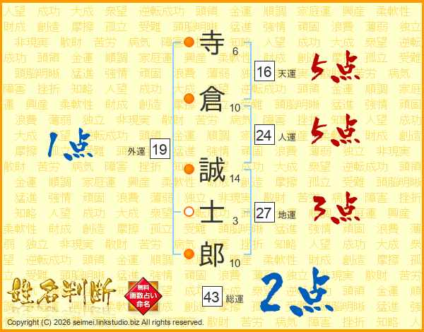 寺倉誠士郎さんの総運は43画の2点!