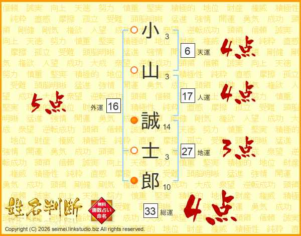 小山誠士郎さんの総運は33画の4点!