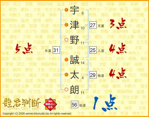 宇津野誠太朗さんの総運は56画の1点!