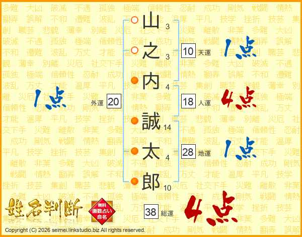 山之内誠太郎さんの総運は38画の4点!