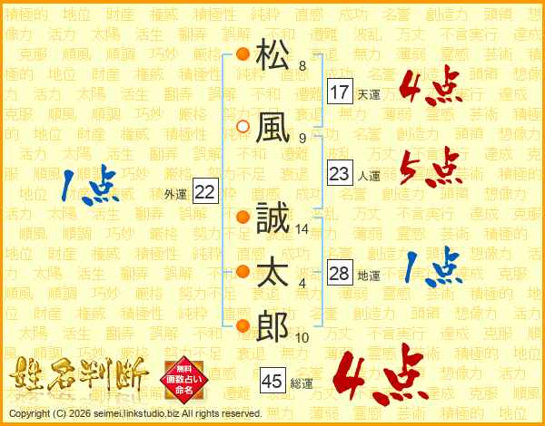 松(8画)風(9画) 誠(14画)太(4画)郎(10画)
