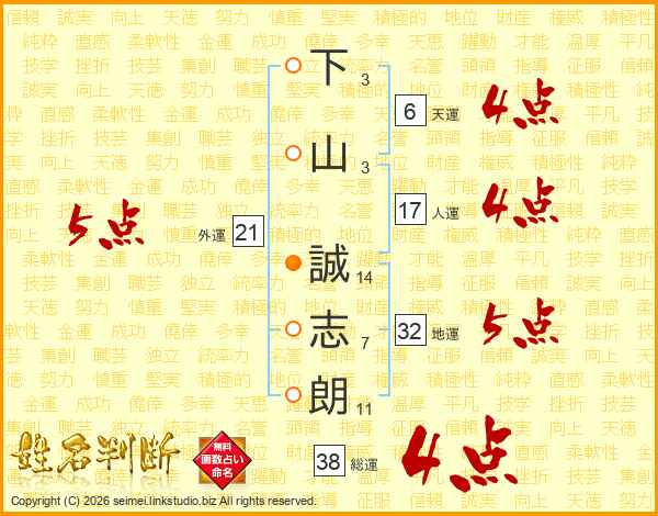 下山誠志朗さんの総運は38画の4点!