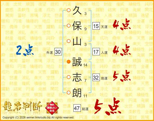 久保山誠志朗さんの総運は47画の5点!