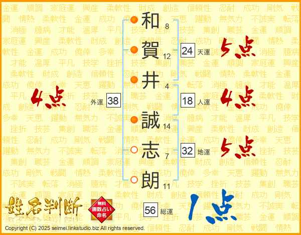 和(8画)賀(12画)井(4画) 誠(14画)志(7画)朗(11画)