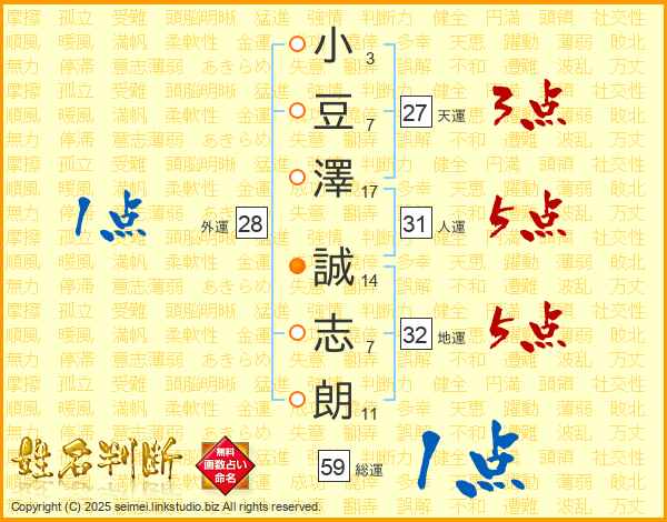 小豆澤誠志朗さんの総運は59画の1点!