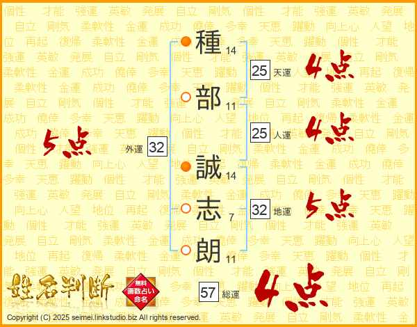 種(14画)部(11画) 誠(14画)志(7画)朗(11画)