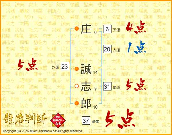 庄誠志郎さんの総運は37画の5点!