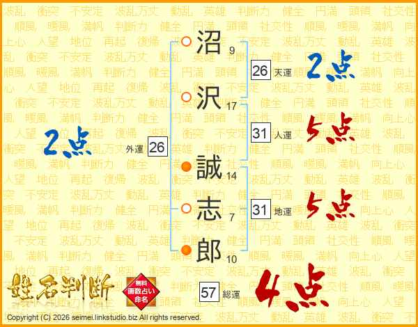 沼(9画)沢(17画) 誠(14画)志(7画)郎(10画)