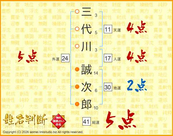 三代川誠次郎さんの総運は41画の5点!