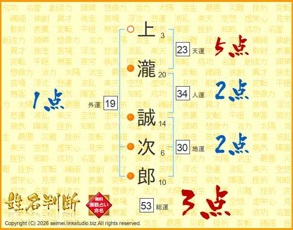 上(3画)瀧(20画) 誠(14画)次(6画)郎(10画)