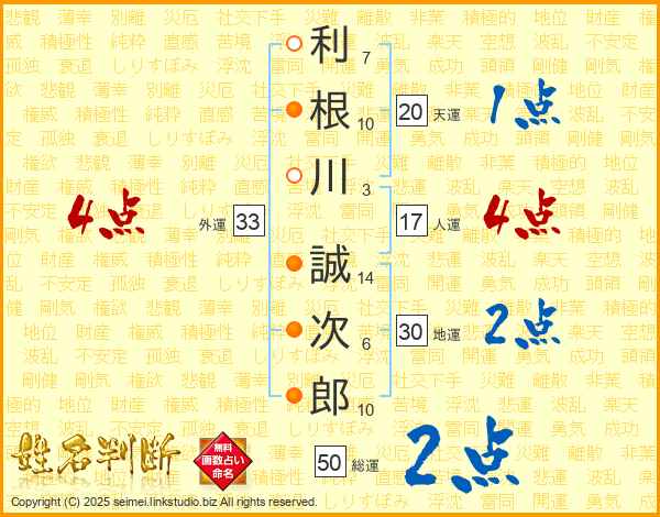 利根川誠次郎さんの外運は33画の4点!