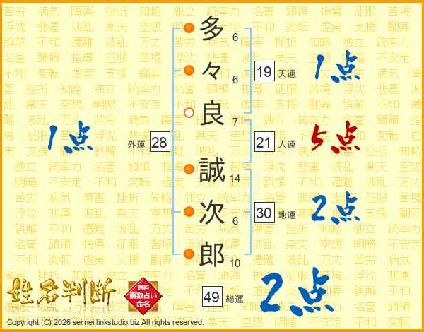 多々良誠次郎さんの総運は49画の2点!