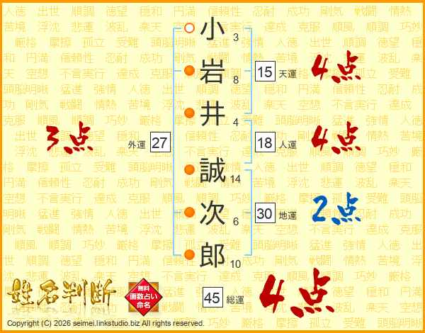 小(3画)岩(8画)井(4画) 誠(14画)次(6画)郎(10画)